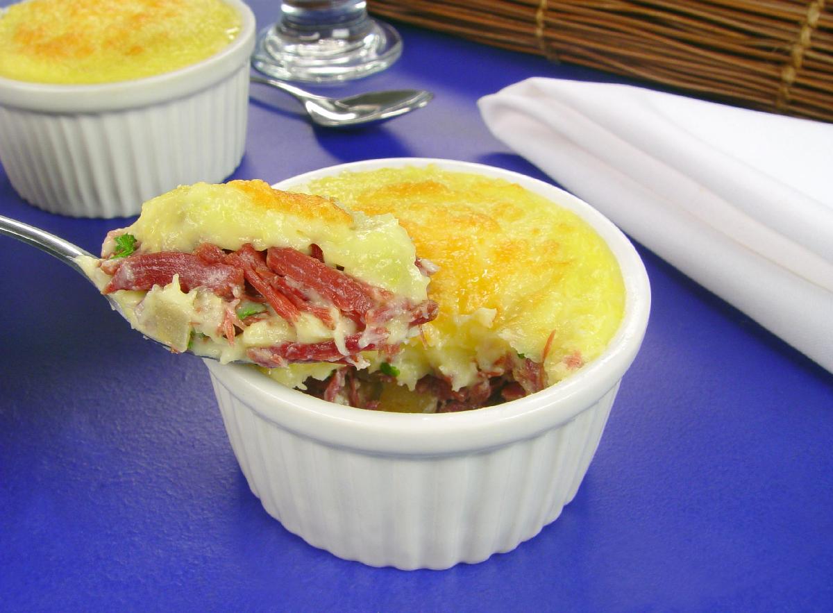 Feito com carne desfiada de qualidade, purê de batata cremoso e aquele tempero perfeito, o Escondidinho de Carne vai conquistar todos os seus convidados.